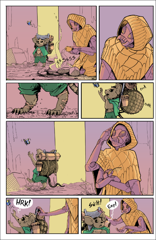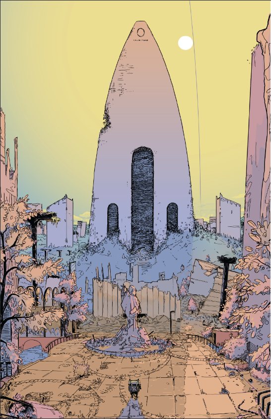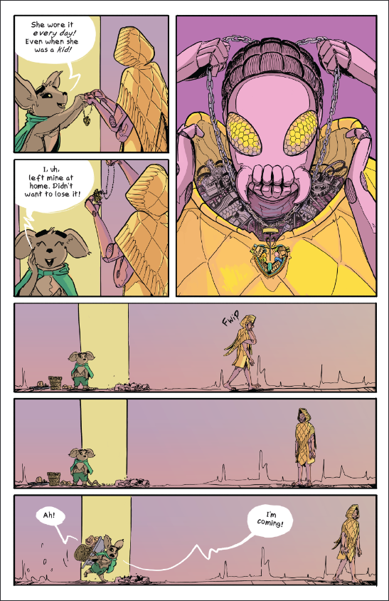 Mountain is a new sci-fi story from Bitmap Prager and Emily Riesbeck telling an enduring story of loss, grief and the journeys a friendship can take. Prager’s breathtaking colors and painted atmospheres create a world you can step into, warming yourself by the fire in the cold of Mountain’s shadow…
