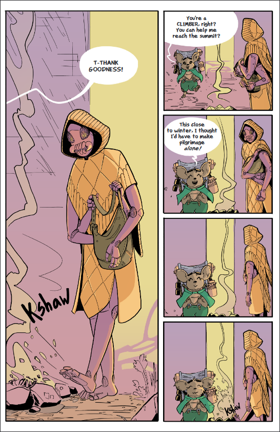 When someone you love dies, their ashes must be scattered from Mountain’s summit, or risk their spirits being caught on this side of the skybridge. Nobody understands this better than our pilgrim, but she is an inexperienced traveler, and Mountain’s perils are many, especially as the days grow colder and the nights longer…
